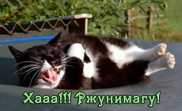 Кот (напомню, между ванной и кухней дыра у пола в стене) пугается, что его накрыли, и шмякается со стола на пол. Попутно обрушивая вилки-ложки. Жена от моего рева и от грохота столовой утвари тоже пугается, кричит и рефлекторно дергает руками. Миска с салатом (и литром воды) взлетает в воздух и падает на кота. Дном кверху. Кот, облитый водой, с пробуксовкой (в линолеуме сквозные дыры от когтей) шарахается под раковину, в дыру. Он там свободно лазает. В ванной он вылетает из-под ванны, отражается от противоположной стены и прыгает в ванну, в которой стою я и в которой еще сантиметров 20 воды. Упав в воду, он понимает, что вообще настал писец и с диким мявом по моей, пардон, голой заднице и спине взлетает на мое плечо и там прочно закогтяется. Это все занимает считанные секунды. Хватаю полотенце, полотенцем хватаю кота и сдираю его с плеча. Кот от испуга обделывается. Жена тем временем кидается к двери ванной и начинает ее выносить, решив, что на меня упала чугунная труба канализации, или я поскользнулся и свернул себе