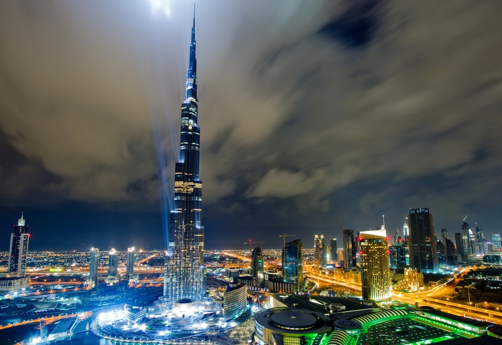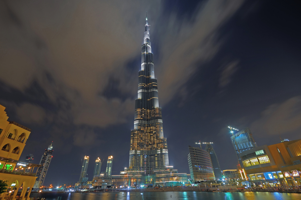 Бурдж-Халифа — это самое высокое сооружение в мире из когда-либо созданных. Его точная высота составляет 828 метров. Рядом с ни находятся другие дубайские небоскребы, но выглядят они, как игрушечные.