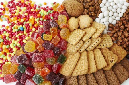 90% шоколада, это вовсе не шоколад (красители-заменители). Шоколадные батончики. Это гигантское количество калорий в сочетании с химическими добавками, генетически модифицированными продуктами, красителями и ароматизаторами. Сочетание большого количества сахара и различных химических добавок обеспечивает высочайшую калорийность и желание есть их снова и снова.