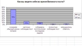 Аналитический Центр Юрия Левады выяснил, как ведут себя россияне во время Великого поста. Оказывается, полностью соблюдают пост только 2% опрошенных. 15% соблюдают его лишь частично, 10% собирались поститься только в последнюю неделю. При этом 70% россиян и в пост сохраняют обычный режим питания. Прокомментировать эти цифры я попросила доктора культурологии Елену Волкову.