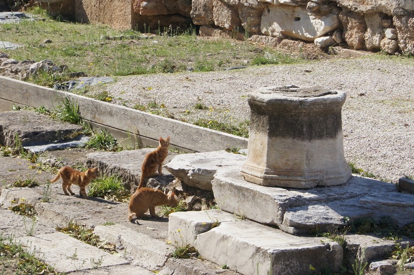 Семейство кошачих гуляющее по развалинам библиотеки Адриана.