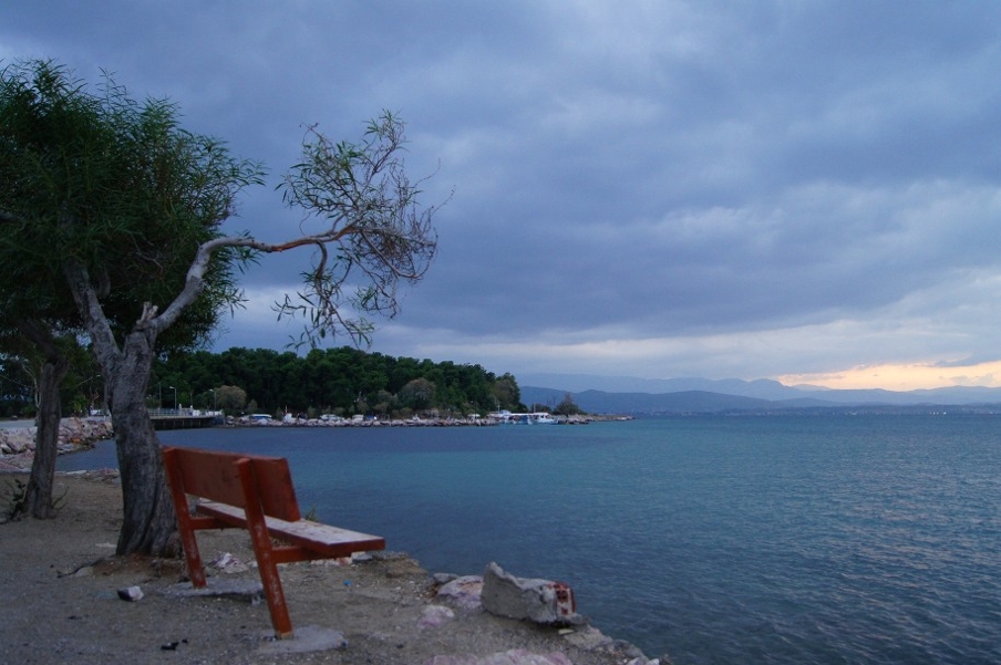 Пляж Эретрии. Сидишь на лавочке наблюдая за паромами снующими между материковой Грецией и островом Эвбея и мысль твоя устремляется всё дальше и дальше...до самой России...