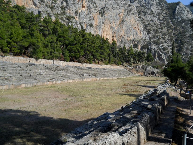 По этому стадиону когда-то носились обнаженные юноши, принимая участие в Пифийских играх.