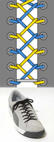 Более экономная модификация метода шнуровки. Для него могут сгодиться и шнурки чуть-чуть покороче.