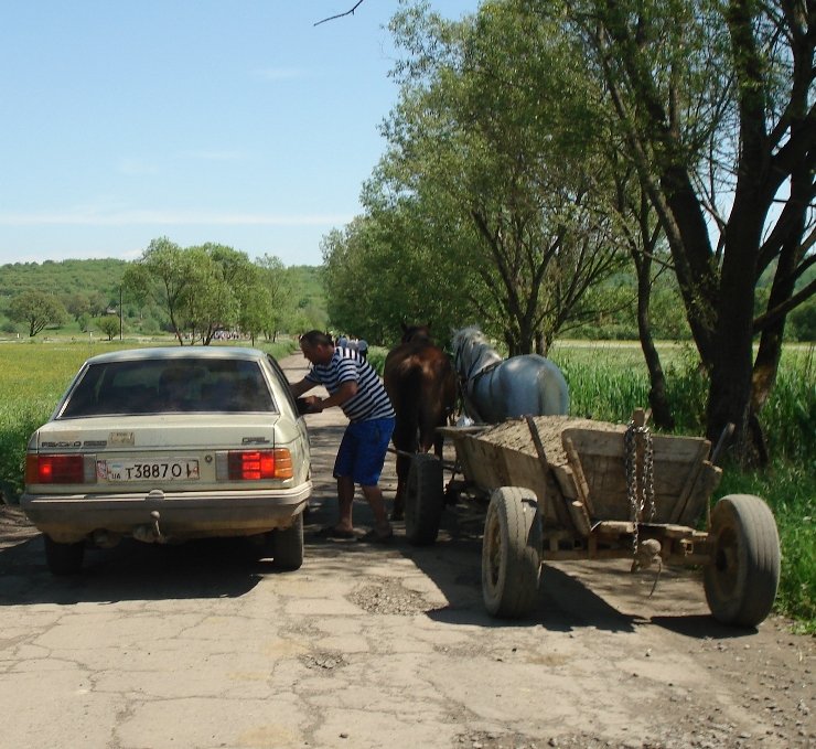 Довелось мне недавно побывать в карпатских горах, под Ужгородом. Природа такая, знаете ли, мало тронутая человеком. Заповедные буковые леса, речушки горные, местные жители прямо из них воду пьют, телеги, лошади, не то тропинки, не то дороги, в общем - жизнь вокруг размеренная и неторопливая.