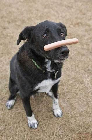 ))) Действительно, молодец! Посмотрите на него, какая выдержка и терпение! А глазки грустные... Хозяева Ироды, хватит издевацца! Заслужил он сосиску, и не одну, а даже килограмм!))