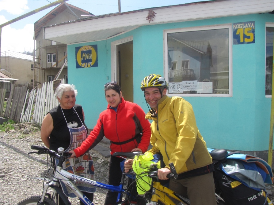 А вот он сам, собственной персоной, нарядный и подтянутый, на блестящем велосипеде, подкатывает к стенам Свети-Цховели. Следуют крепкие рукопожатия, обмен шутками, а через полчаса мы уже в аутентичном духанчике произносим первые тосты за знакомство и благополучие, за путешественников и за их ангелов-хранителей, за тех, кого с нами нет, но кто волнуется за нас. Тосты перемежаются рассказами, рассказы тостами. Одно вкуснейшее блюдо сменяет не менее вкусное.
