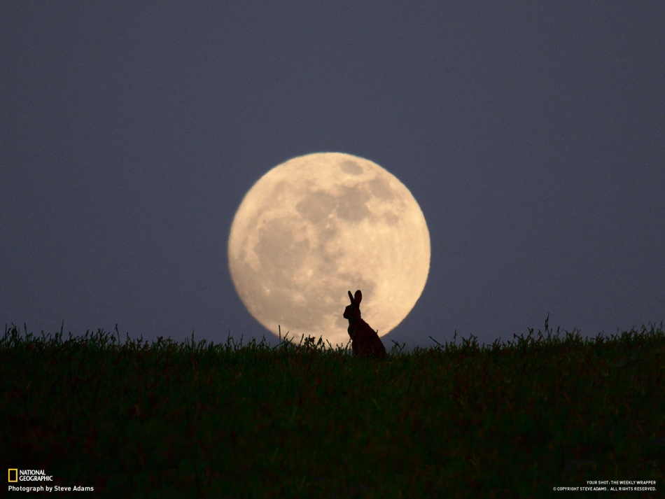Заяц смотрит на восходящую луну. (Steve Adams)