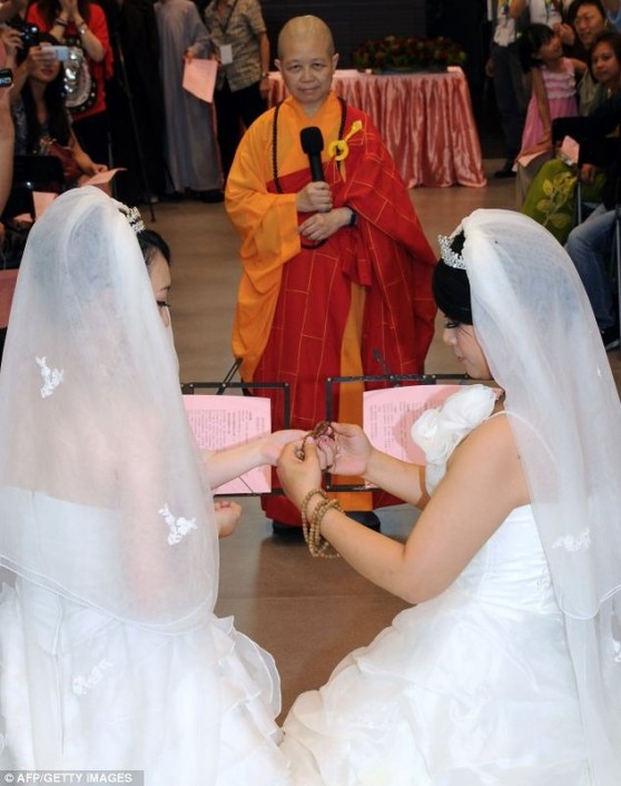 Буддизм не приветствует всякие и всевозможные сексуальные извращения!!!!!!!!!!!!!!! монахине которая провела церемонию на Тайване обьявлен бойкот.