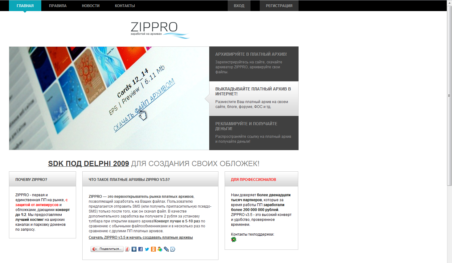 Тем не менее, их авторы также не бездействуют, постоянно модифицируя и перепаковывая свои поделки. Об этом сообщается непосредственно с главной страницы ZIPPRO: «первая и единственная партнерская программа на рынке с защитой от антивирусов».