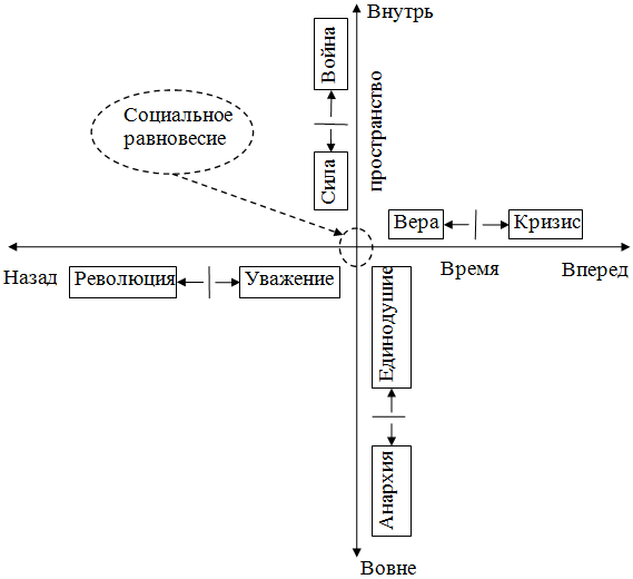 Рис.1. Пространственно-временной крест социальной динамики.