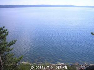 Мы ездили с друзьями. Это была наша последняя с мужем поездка. Красивейшее озеро с чистейшей водой. Горы кругом.День был жаркий с маревом над озером. Вода искрилась на солнце.