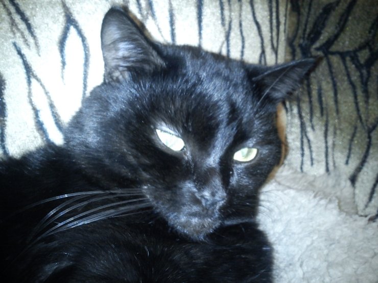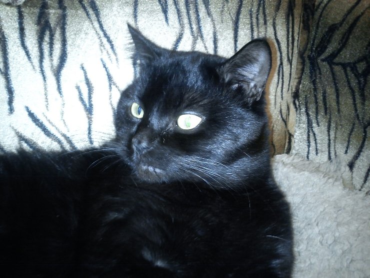 Чувства превосходства в нем с избытком, дочь всегда смеется, что он " смотрит, как на дерьмо". Глаза у него зеленовато-желтые, жаль на фото этого не видно, снимала в полутьме.