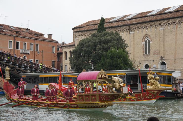 в пользу Венеции,и в честь возвращения в родной город состоялся грандиозный парад судов.Историческая регата традиционно проходит на Большом канале.Яркий красочный парад символизирует встречу королевы.