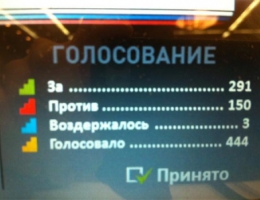 "За" проголосовал 291 человек, 150 высказались "против", трое воздержались.