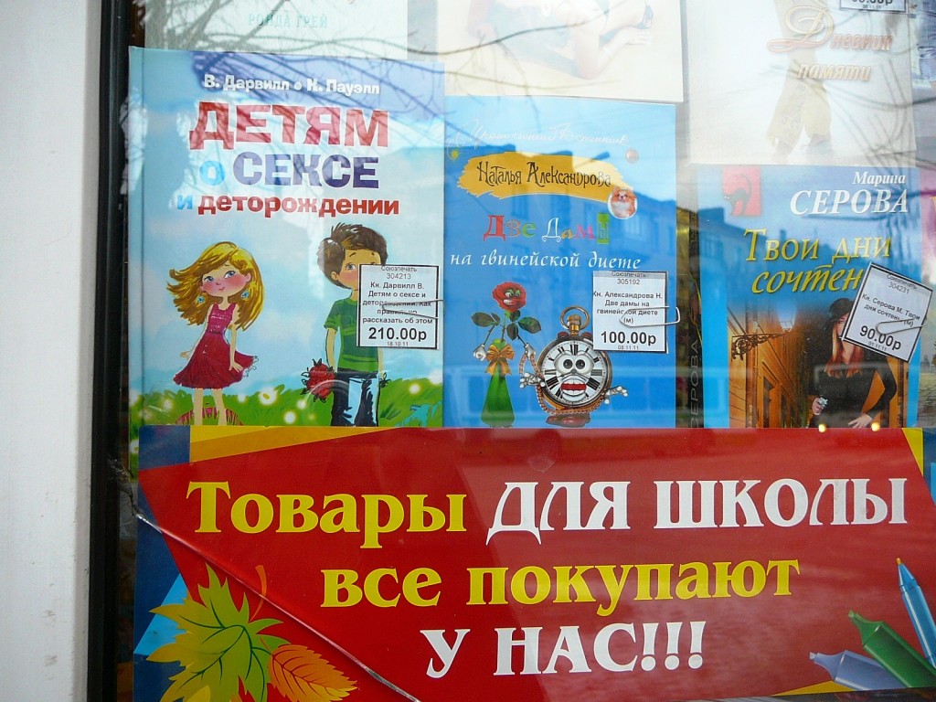 «Мы приехали покупать канцелярские товары малообеспеченным семьям, заглянули в отдел детской литературы и ужаснулись, - рассказывает Жабреев. - На полках, где стояли детские энциклопедии, среди научно-познавательной литературы, книг об окружающем мире, обнаружилось, на первый взгляд, невинное издание "Как взрослеет мое тело" (Валерия Фадеева, издательства Аст, Астрель, тираж 5000 экземпляров). Я взял книгу и оторопел, - взрослые половые органы, мужчины, женщины, подробности сексуальных поз, советы, как ласкать гениталии, рассказ о том, как происходит семяизвержение и т.д. Там же, кстати, рассказывалось про гомосексуализм, эксгибиционизм и педофилию. Книга стоила всего 149 рублей. Взяли следующую книгу - "Откуда берутся дети? Сексуальная энциклопедия для детей 8-11 лет" (авторы Виржини Дюмон, Серж Монтанья, издательство Астрель, общий тираж 6 000 экземпляров).