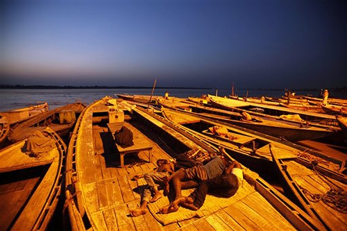 Люди спят в лодках в реке Ганг в Варанаси, Индия. Варанаси — один из старейших городов в мире, и миллионы индуистских паломников ежегодно собираются здесь для купания в священной реке Ганг, совершения обрядов и молитв. Фото: АР