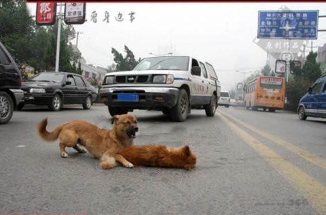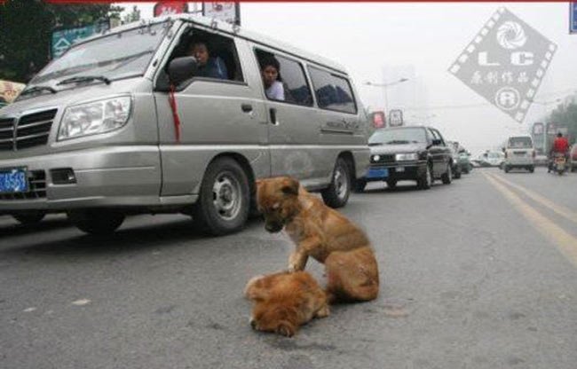 Собака попала под колеса автомобиля… Пока она лежала на дороге, разыгралась настоящая драма…