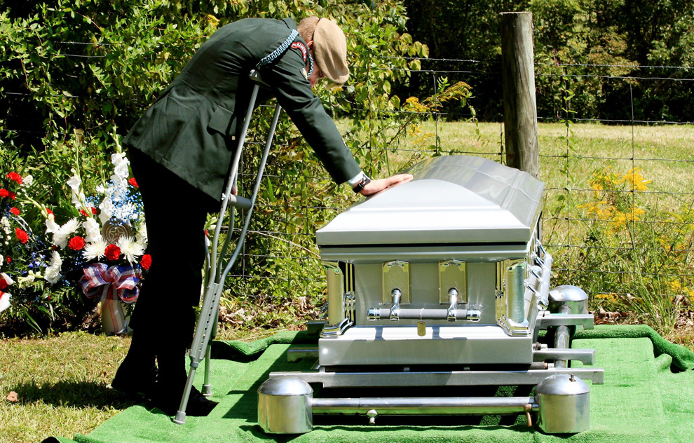 Солдат Итан Гронбек пришел попрощаться со своим другом Кристофером Райтом 28 августа на его могиле в Вансбурге, штат Кентукки. Оба солдата были ранены во время боя в Афганистане.