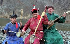 Тут в эпосе появляются еще три героя: Борис (Ельцин), «главный волк, говорящий с Луной», и два «бугатыря» (в других строках этого сочинения они обозначены как «бугатуры») — Путтуг могэ (В. Путин), он же «владеющий миром», и Дидим Анаа толдуг из рода медведей (Д. Медведев), «потомок первочеловека». О Путине: «ноги его, как корни, врастали в землю, сам же — в седло коня».