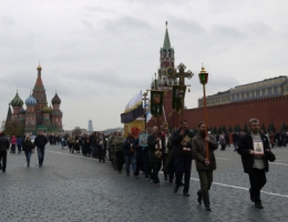 После его окончания крестоходцы еще раз прошли с крестами и хоругвями по Красной площади до Васильевского спуска, где двухнедельный многокилометровый крестный ход был официально завершен.