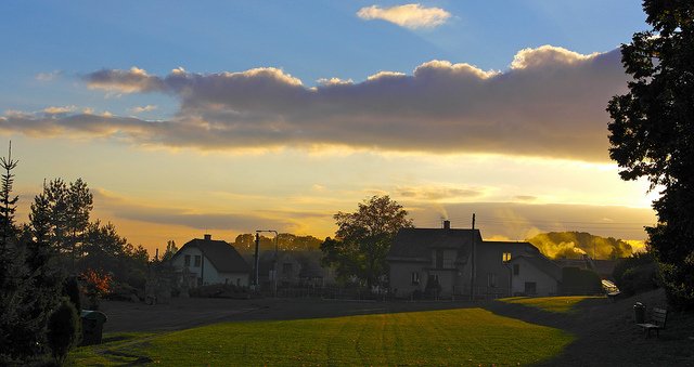 Некоторое умиротворение настало ближе к вечеру, когда закатное солнце окрасило в тёплые тона сельские домики...