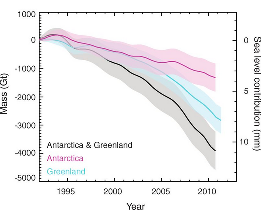 И с чего взяли, что объем суши уменьшится? Когда перестает давить вес льда, земная кора в этом месте приподнимается, так что вытеснение воды на сушу не будет, а наооборот новая земля появится. Вследствии большого таяния пресной воды климат станет влажнее и более равномерный. Усилятся штормв, грозы и ливневые дожди, но в Сахаре от этого не откажутся!