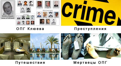 <map id="_ImageMap03" name="ImageMap03"> <area title="Участники и действующие члены ОПГ Клюева" shape="rect" coords="0,0,229,122" href="/rus/criminal-enterprise-org-chart/" alt="Участники и действующие члены ОПГ Клюева"/> <area title="Преступления, совершенные ОПГ Клюева" shape="rect" coords="229,1,458,123" href="/rus/group-crimes/" alt="Преступления, совершенные ОПГ Клюева"/> <area title="Совместные поездки и отдых ОПГ Клюева – коррупционеры и преступники" shape="rect" coords="0,127,229,249" href="/rus/secret-travel/" alt="Совместные поездки и отдых ОПГ Клюева – коррупционеры и преступники"/> <area title="Мертвецы ОПГ Клюева" shape="rect" coords="229,127,458,249" href="/rus/dead-bodies/" alt="Мертвецы ОПГ Клюева"/> </map>