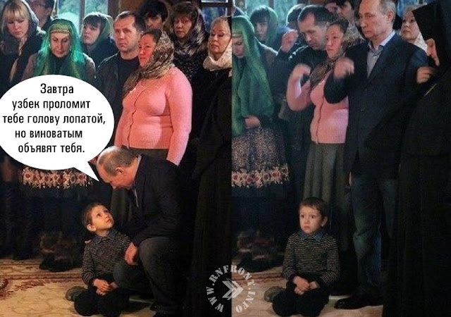 Поэтому в истории с узбеком, который покалечил 11-ти летнего мальчика, россиянин первым делом интересуется, а не был ли виноват сам мальчик? Может быть мальчик был плохой? Может он обидел хорошего узбека? Ведь если виноват узбек, то получается, что власти РФ — плохие, раз впускают в страну животных, которые калечат детей.