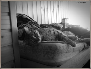 А здесь моё неприкосновенное место. Это то, что люди называют коридором. Тут мягко и удобно. И поспать можно, и все как на ладони, продолжаю следить.