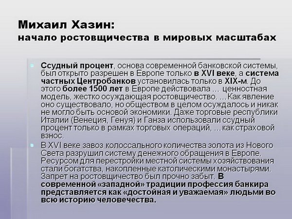 «В Русской Правде существуют понятия: отдача имущества на хранение (поклажа), простой заём, бескорыстная ссуда, одолжение по дружбе, отдача денег в рост из определённого условленного процента, процентный заём краткосрочный и долгосрочный, торговая комиссия, вклад в торговое компанейское предприятие. В Правде существует определённый порядок взыскания долгов с несостоятельного должника при ликвидации его дел, то есть порядок торгового конкурса с различением несостоятельности злостной и несчастной. Существует несколько видов кредитного оборота.»