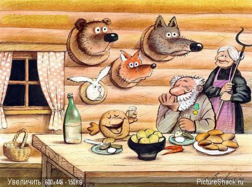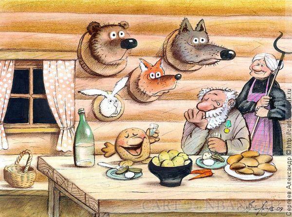 Состарившись, Колобок смело гулял по всему лесу, понимая, что зубы ломать никому неохота...
