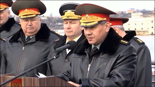 20 февраля глава Минобороны Сергей Шойгу прибыл с рабочей поездкой на главную базу Черноморского флота в Севастополь.  В аэропорту министра встретил его украинский коллега Павел Лебедев. Министры провели краткие переговоры, а затем возложили венки к Вечному огню у мемориала павшим защитникам города.