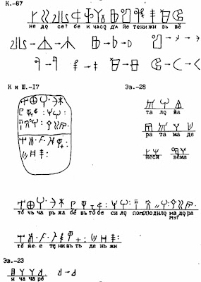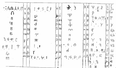 Седьмая и восьмая гр. со значением ЙЗЪ. Знаки сравнивались с этрусским алфавитом и руницей.