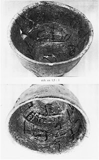 Надпись на посуде, найденной в Кноссе, читается справа налево снизу вверх от края к середине (смотрите прорисовку на рис. 5 – 7.): «Яшьте не кашу у кане, а мясо у каше да будет. Лей».