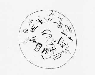 Рис. 10. Прорисовка надписи на перстне (См. Recueil des inscriptions en lineare A / Godart L. et Olivier J. – P. V. 4. – P., Librairie orientaliste. Paul Geuthner, 1982. – P. 153).