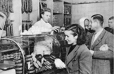 Несколько слов о ленинградских гастрономах того времени. Наибольшим разнообразием отличался рыбный отдел. Несколько сортов красной и черной икры было выставлено в больших мисках. Полный ассортимент белой рыбы горячего и холодного копчения, красная рыба от кеты до семги, копченые угри и маринованные миноги, селедка в банках и бочках. Живая рыба из рек и внутренних водоемов доставлялась сразу после вылова в специальных автоцистернах с надписью "рыба". Мороженой рыбы не было. Она появилась лишь в начале 60-х годов. Было множество рыбных консервов, из которых я помню бычки в томате, вездесущих крабов по 4 рубля за банку и любимый продукт студентов, живущих в общежитии – тресковую печень. Говядина и баранина делилась на четыре категории с различной ценой, в зависимости от части туши. В отделе полуфабрикатов были представлены лангеты, антрекоты, шницеля и эскалопы. Разнообразие колбас было существенно шире, чем сейчас, а их вкус я помню до сих пор. Сейчас лишь в Финляндии можно попробовать колбасу, напоминающую советскую из тех времен. Следует сказать, что вкус вареных колбас изменился уже в начале 60-х годов, когда Хрущев предписал добавлять в колбасы сою. Это предписание проигнорировали лишь в прибалтийских республиках, где еще в 70-х годах можно было купить нормальную докторскую колбасу. Бананы, ананасы, манго, гранаты, апельсины продавались в крупных гастрономах или специализированных магазинах круглый год. Обычные овощи и фрукты нашей семьей приобретались на рынке, где небольшое повышение цены окупалось более высоким качеством и возможностью выбора.