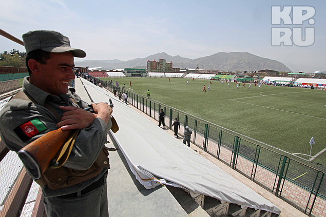 Афганцев поддерживают с трибун, по которым прохаживаются автоматчики с шевронами «Коммандо» Фото: Александр КОЦ Смотрите фотогалерею! |