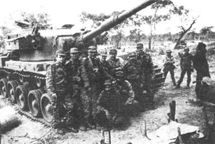 Спецназовцы СССР в Анголе. Фото на фоне подбитого танка армии ЮАР