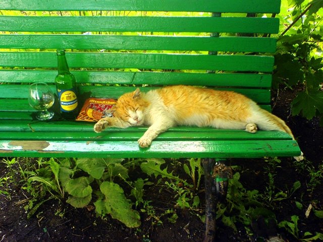 А я такую подпись под фото и придумал - "Перед концом света хучь несколько дней и коты хотят пожить по человечески!"..