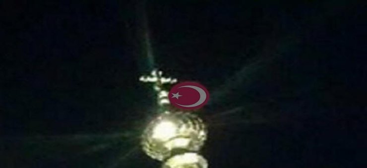 Снимки, на которых над одним из куполов храма вблизи с золотым крестом различимо находится багряного цвета диск, сделаны на тот момент, когда только-только закончился крестный ход.
