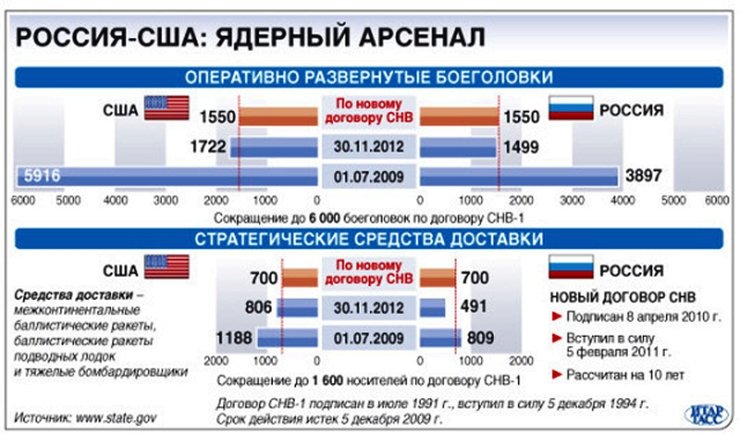 -согласно сделки Гор-Черномырдин передано в США 500 тонн российского оружейного урана(90%) , два года назад закрыт последний завод в Томске -7 по обогащению,а боеголовки ракет необходимо менять через определенное количество лет-иначе они превращаются в радиоактивный хлам.И что там сегодня стоит на дежурстве-одному богу ведомо.