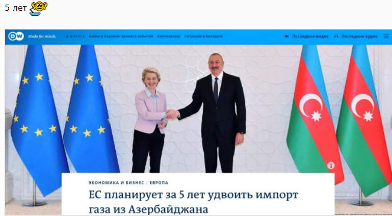 Новый удар в спину. Азербайджан готов «подставить плечо» Европе, причем у него есть определенные основания для этого. Правда, не вот сейчас: нужно увеличивать как газодобычу, так и удваивать пропускную способность системы ТАНАП. Это не прямо завтра, и может занять срок от полутора до трех лет, даже если заняться этой проблемой в авральном порядке.