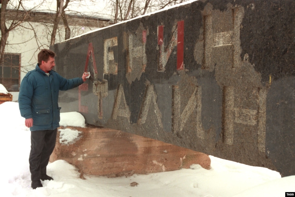 После того, как из мавзолея вынесли тело Сталина, вывеску "Ленин-Сталин" сняли и вывезли на окраину Москвы.