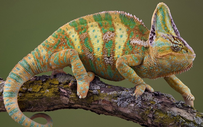 хамелеонов встречаются однотонно окрашенные, пятнистые и полосатые виды.