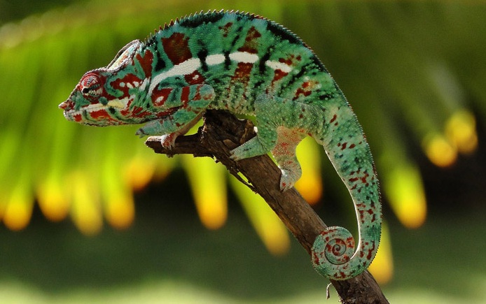 Пантеровый хамелеон (Panther chameleon)Длина тела у большинства хамелеонов 20-30 см, самый крупный