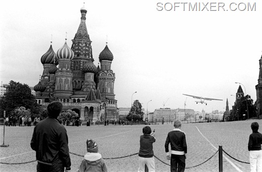 — По отелю «Россия», который был на карте. С посадкой сначала были затруднения — я видел, что на Красной площади было очень много народу, трижды заходил на низкую высоту, чтобы показать людям, что хочу сесть. Но, как только набирал высоту, они опять сходились. Поэтому и решил сесть на мосту возле Красной площади.