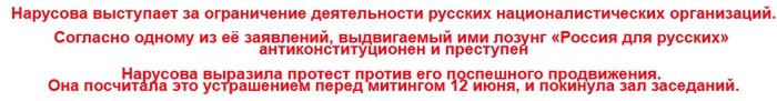Нарусова выразила протест против его поспешного продвижения. Она посчитала это устрашением перед митингом 12 июня, и покинула зал заседаний.
