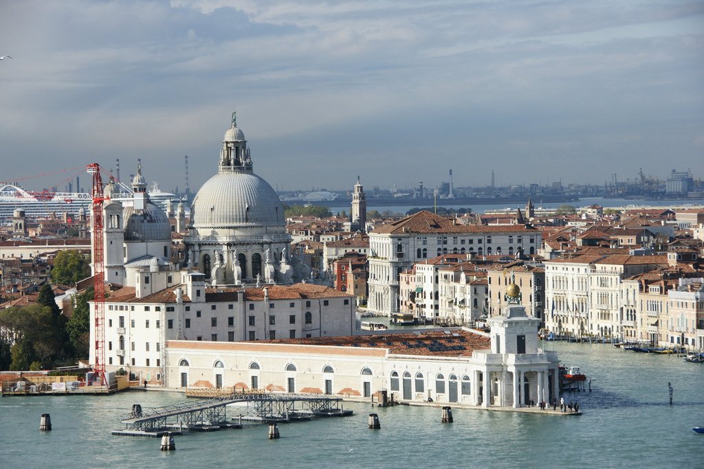 Улицами в Венеции служат 150 каналов. Большой канал, длина которого 3,8 к, а ширина 30-70 м, делит весь город на две части: исторический центр и промышленно-торговую часть, а в него, как реки, впадают каналы поменьше. Общее число переброшенных через них мостов около 400.