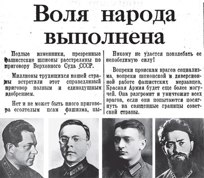 А вот знаменитый февральско-мартовский пленум 1937 г., с которого началась главная кампания «большого террора»: на нем выступили 73 человека, гневно клеймивших троцкистов, зиновьевцев и бухаринцев и призывавших к беспощадной борьбе с врагами народа. В течение следующих полутора лет из этих 73 верных сталинцев было расстреляно 56. А вообще с августа по декабрь 1937 г. было расстреляно 255 тысяч человек (1 600 расстрелов в день). В СССР набралось столько агентов иностранных разведок? А партийные работники, нap-кoмы, директора предприятий, командиры корпусов и дивизий (все до одного воевавшие в гражданскую войну за Советскую власть) вдруг возжаждали «вернуть власть капиталистов и помещиков»? Бред.